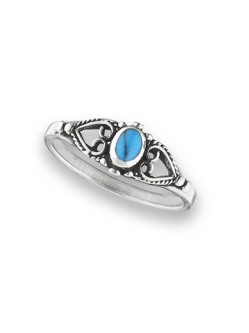 Original price $ 14.00 - Original price $ 14.00Original price$ 14.00$ 14.00 - $ 14.00Current price $ 14.00| /This sweet ring has an oval synthetic turquoise stone surrounded by stylized filigree hearts. Available in whole sizes 5-10. Sterling silver. Face...
