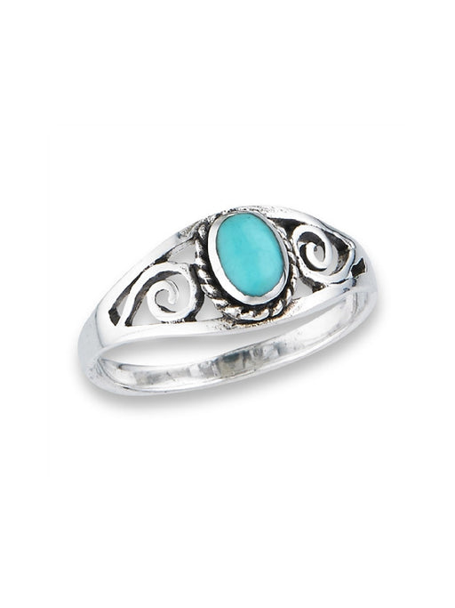 Original price $ 16.00 - Original price $ 16.00Original price$ 16.00$ 16.00 - $ 16.00Current price $ 16.00| /This elegant ring has an oval synthetic turquoise stone set in the center, surrounded by a delicate rope border and fanciful swirls. Available in w...