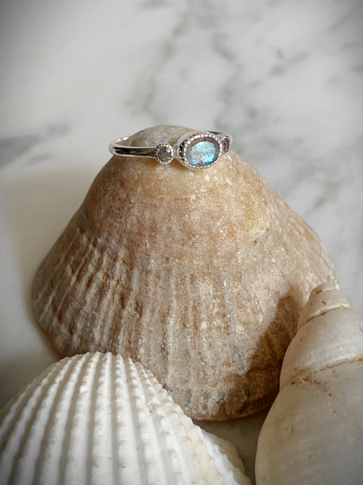 Original price $ 32.00 - Original price $ 32.00Original price$ 32.00$ 32.00 - $ 32.00Current price $ 32.00| /This sweet & simple ring is a star set with shimmering labradorite, the stone of dreams & magic. The rounded band is sterling silver. Avail...