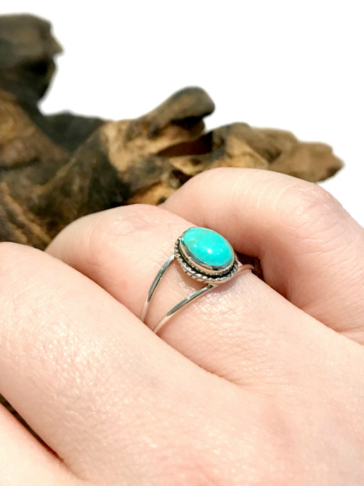 Original price $ 18.00 - Original price $ 18.00Original price$ 18.00$ 18.00 - $ 18.00Current price $ 18.00| /An oval of bright blue synthetic turquoise is encircled with a dainty rope border and set in a split-shank style setting. Sterling silver. Availabl...