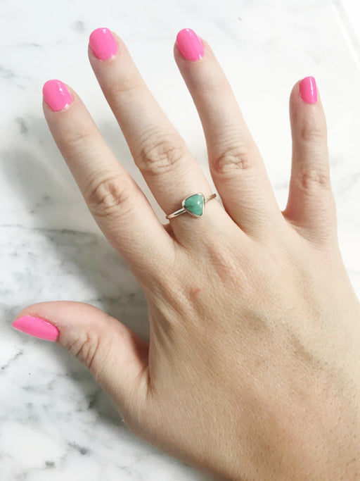 Original price $ 14.00 - Original price $ 14.00Original price$ 14.00$ 14.00 - $ 14.00Current price $ 14.00| /This modern ring is a sleek triangle with rounded corners inlaid with bright blue synthetic turquoise. Sterling silver. Available in whole sizes 6...