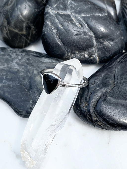 Original price $ 24.00 - Original price $ 24.00Original price$ 24.00$ 24.00 - $ 24.00Current price $ 24.00| /This mystical ring features a coffin-cut black tourmaline gemstone, encased in sterling silver and set on a simple band. Black tourmaline is said t...