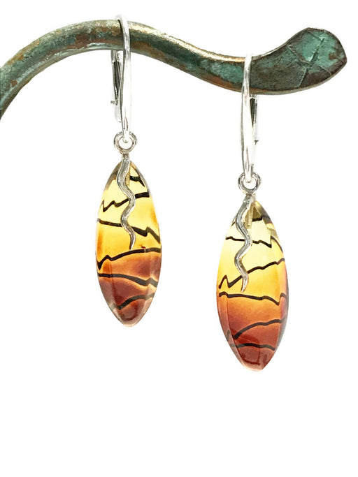 Original price $ 22.00 - Original price $ 22.00Original price$ 22.00$ 22.00 - $ 22.00Current price $ 22.00| /These handmade dangle earrings are a sleek dolphin with a genuine Baltic amber cabochon set in its belly. Lever-back ear wires are an elegant fi...