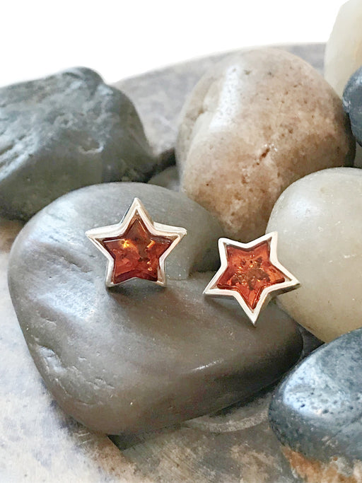 Original price $ 22.00 - Original price $ 22.00Original price$ 22.00$ 22.00 - $ 22.00Current price $ 22.00| /These larger size stud earrings are set with genuine Baltic amber in a beautiful cognac color in sterling silver settings. 1/2" across.