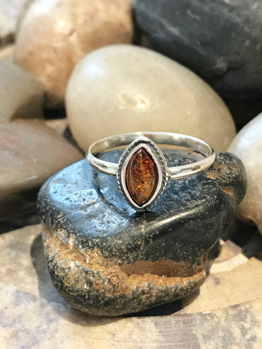 Original price $ 22.00 - Original price $ 22.00Original price$ 22.00$ 22.00 - $ 22.00Current price $ 22.00| /This ring features a long oval of cognac colored amber set in a sterling silver setting with silver loop detail on the shank of the ring. Genuine B...