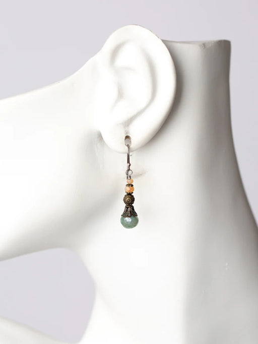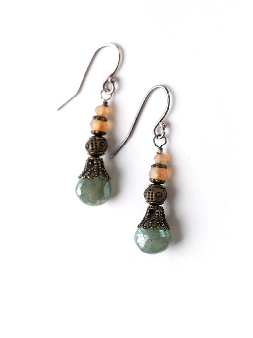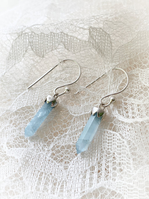 Original price $ 28.00 - Original price $ 34.00Original price$ 28.00 - $ 34.00$ 28.00 - $ 34.00Current price $ 28.00| /These dangle earrings feature a faceted gemstone point capped with sterling silver. Choose from five stones: Amethyst, aquamarine, labradorite, moo...