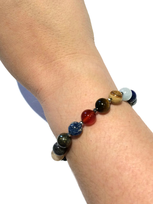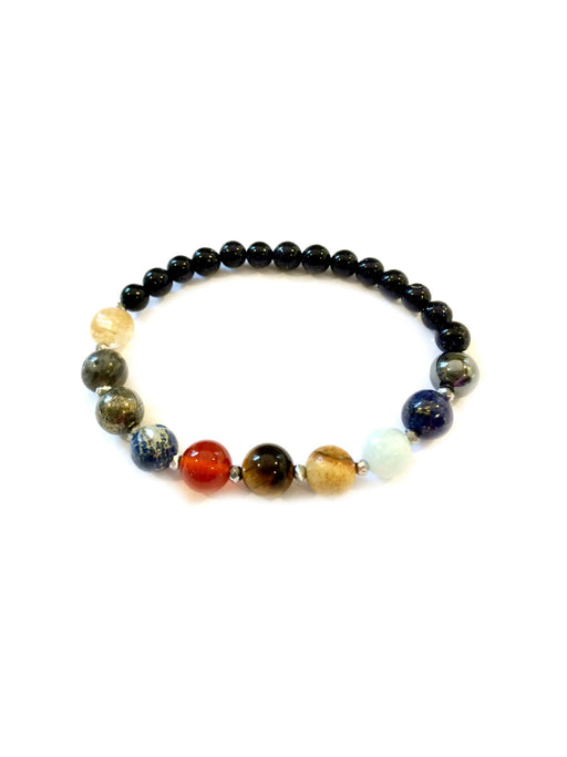 Original price $ 16.00 - Original price $ 16.00Original price$ 16.00$ 16.00 - $ 16.00Current price $ 16.00| /This unique stretch bracelet is beaded in semi precious gemstones to represent the solar system! Sun- Citrine; Mercury- Larvikite; Venus- Pyrite; E...