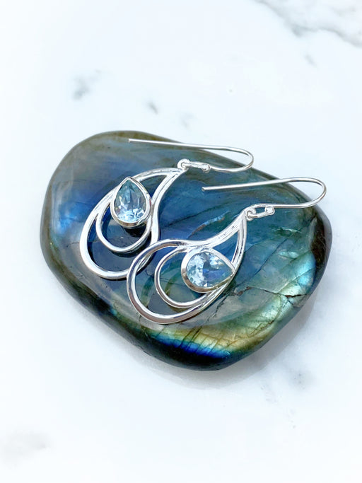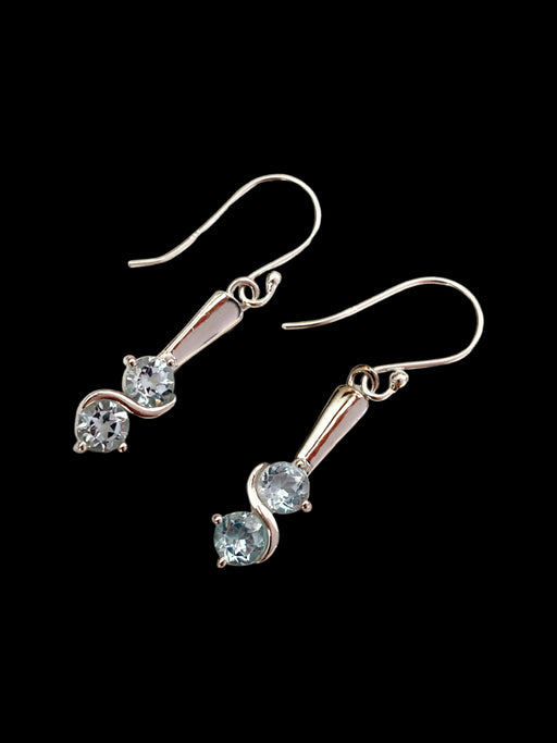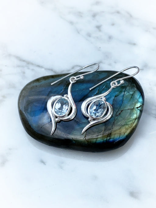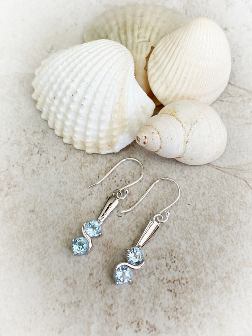 Original price $ 42.00 - Original price $ 42.00Original price$ 42.00$ 42.00 - $ 42.00Current price $ 42.00| /These chic dangle earrings feature a bar of silver leading to two faceted blue topaz gemstones with a silver swoop in between the stones. Sterling...