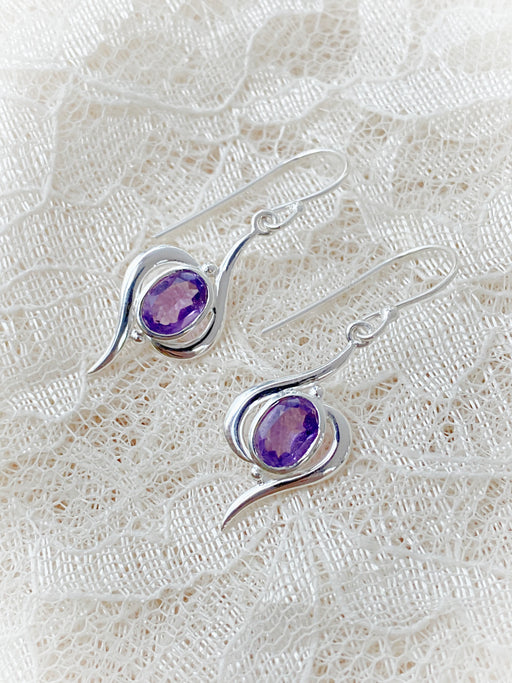 Original price $ 27.00 - Original price $ 27.00Original price$ 27.00$ 27.00 - $ 27.00Current price $ 27.00| /These earrings feature a curved teardrop dangle with looping silver work set with a pear cut gemstone in the center. Choose from amethyst (purple) ...