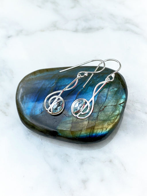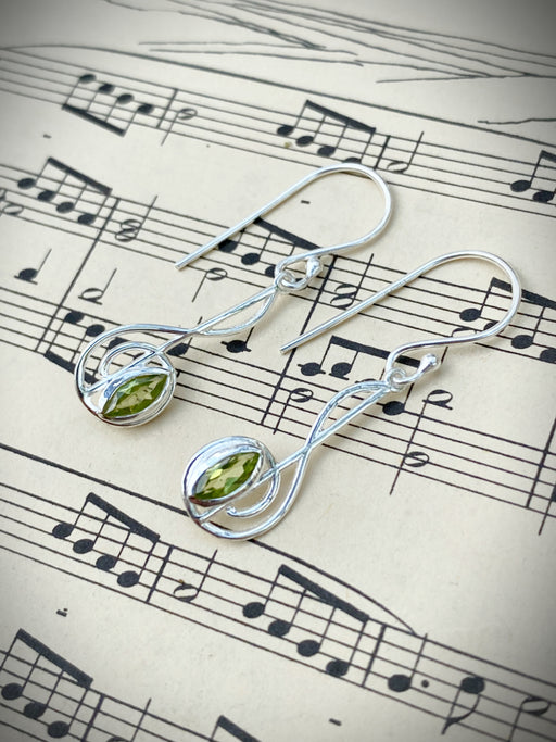 Original price $ 25.00 - Original price $ 25.00Original price$ 25.00$ 25.00 - $ 25.00Current price $ 25.00| /These dangle earrings feature a wispy silver treble clef set with a faceted marquis gemstone. Available in blue topaz, garnet & peridot. Sterli...