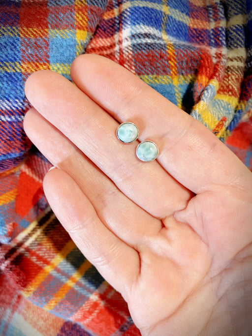 Original price $ 24.00 - Original price $ 24.00Original price$ 24.00$ 24.00 - $ 24.00Current price $ 24.00| /Reminiscent of the sea and sky with swirling light blue and white, Larimar is a beautiful, versatile stone. These classic round posts have a larima...