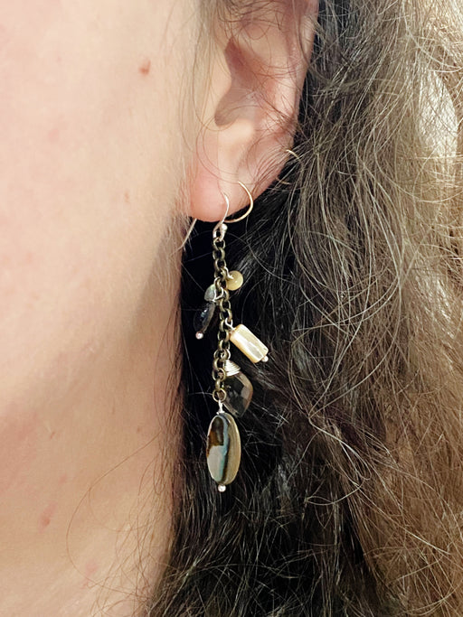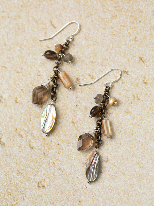 Original price $ 50.00 - Original price $ 50.00Original price$ 50.00$ 50.00 - $ 50.00Current price $ 50.00| /These dangle earrings feature a cascade of gemstones beads to meet an abalone shell focal bead, in a neutral yet exciting color scheme! Gemstone be...