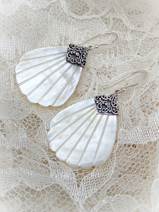 Original price $ 36.00 - Original price $ 36.00Original price$ 36.00$ 36.00 - $ 36.00Current price $ 36.00| /These fabulous statement earrings feature dangles of creamy iridescent mother of pearl shell that has been carved into a fan shape and topped with ...