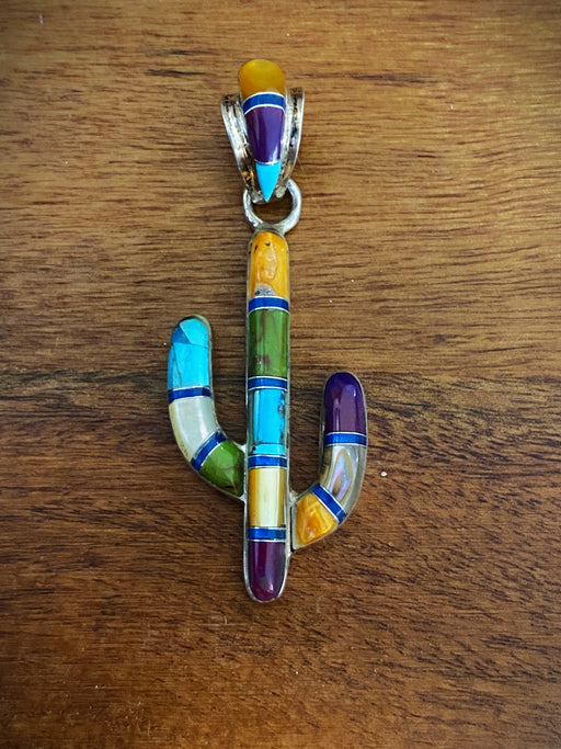 Original price $ 64.00 - Original price $ 64.00Original price$ 64.00$ 64.00 - $ 64.00Current price $ 64.00| /This colorful pendant is a cactus inlaid with various stones including blue turquoise, green gaspeite, purple sugilite, and abalone, orange spiny o...