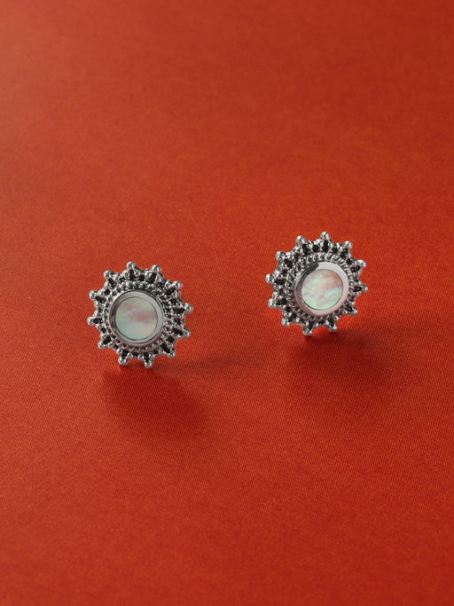 Original price $ 30.00 - Original price $ 30.00Original price$ 30.00$ 30.00 - $ 30.00Current price $ 30.00| /These simple yet detailed stud earrings feature a round stone inlaid in sterling silver beaded burst design. Available in white mother of pearl &am...