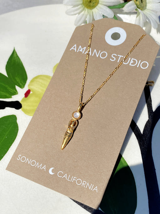 Original price $ 36.00 - Original price $ 36.00Original price$ 36.00$ 36.00 - $ 36.00Current price $ 36.00| /Selene was the Greek goddess of the moon. This figural pendant is crafted from soft matte gold and is holding a moon of mother of pearl. Handmade i...