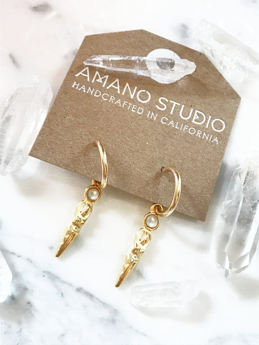 Original price $ 36.00 - Original price $ 36.00Original price$ 36.00$ 36.00 - $ 36.00Current price $ 36.00| /Selene was the Greek goddess of the moon. These gold plated hoop earrings feature a figural drop of a goddess holding a mother of pearl moon. Soft ...