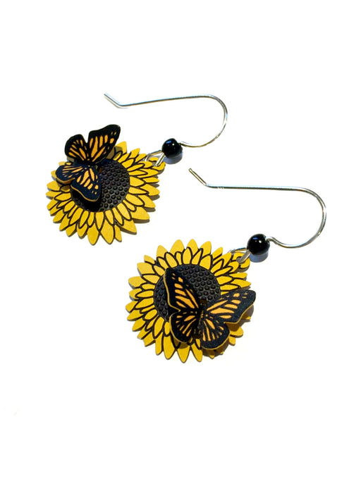 Monarch Butterfly on Sunflower Earrings by Sienna Sky