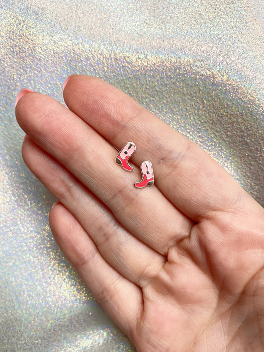 These lil stud earrings are purdy as can be, cowgirl boots filled with vibrant enamel and silver star details.