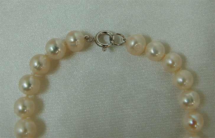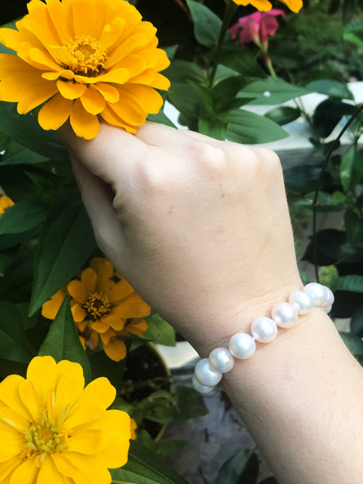 Chunky pearl bracelet features creamy 10mm freshwater pearls, knotted between each bead in the classic style.