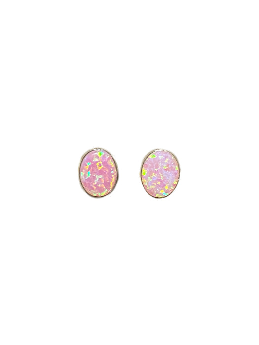 These classic stud earrings are pink opals set in sterling silver.