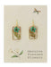 These delicate clear rectangular earrings feature genuine dried turquoise flowers and green leaves embedded in clear resin with tiny gold flakes and tiny pearls, with a gold border for cottage inspired elegance.