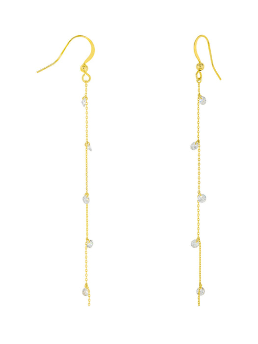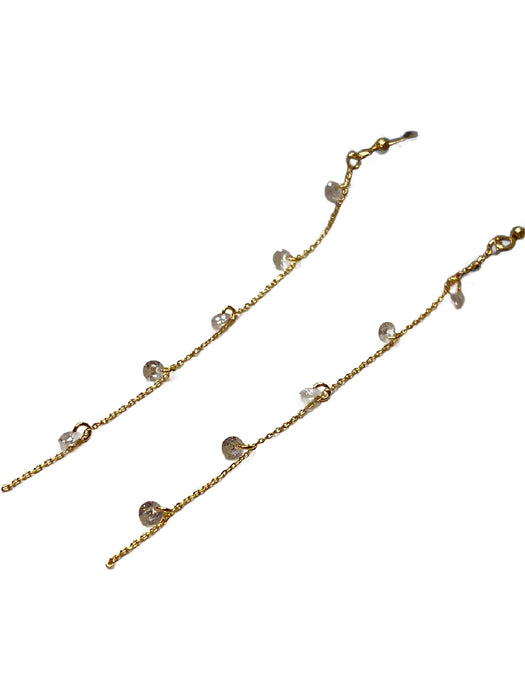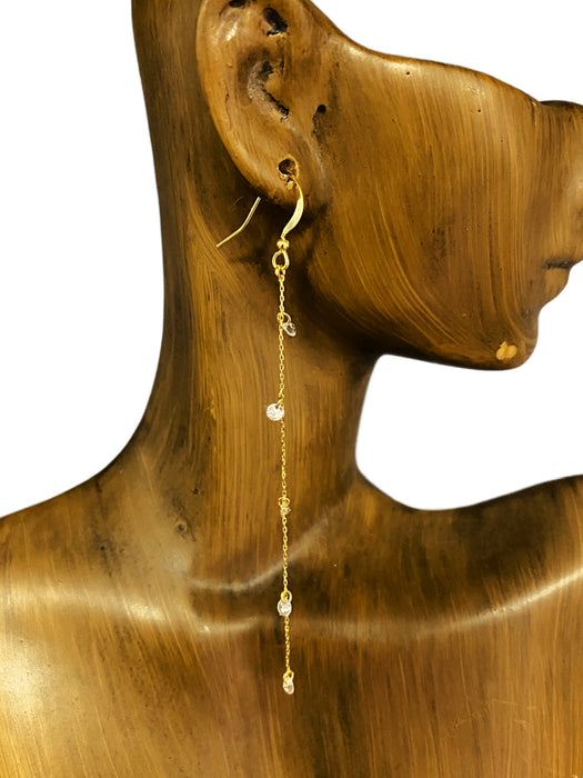 These dainty statement earrings have a dangle of a long segment of chain with five crystal discs spaced out evenly for subtle sparkle.