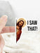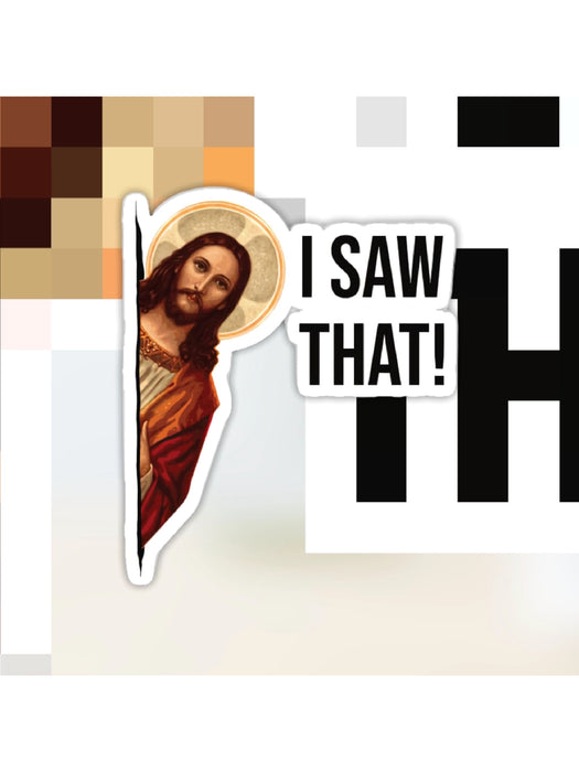 This sticker features a certain holy figure popping out with the caption reading "I Saw That". This high-quality vinyl sticker is water and sun-resistant and perfect for your water bottle, laptop, or anywhere needing some extra flair!