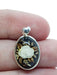 Pendant is 1" long. Comes on an adjustable 16-18" cable chain.