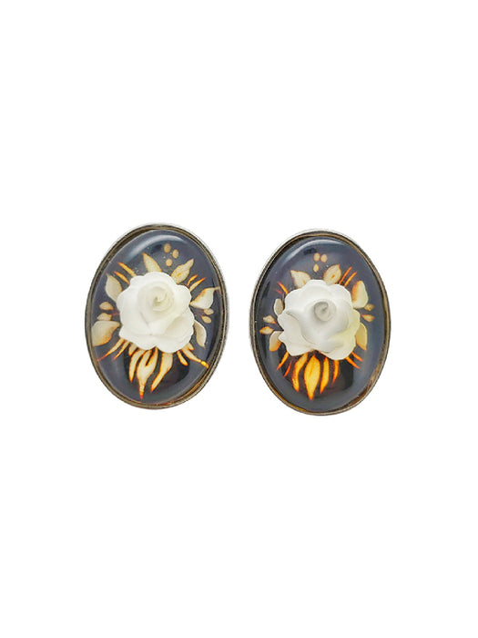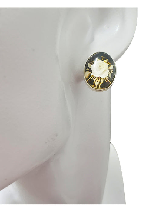 This special piece is a cabochon of Baltic amber, reverse-carved by skilled artisans to make a beautiful image of a blooming rose. Each piece is painstakingly carved from the backside using different depths to create a detailed image on the front, and makes each piece wonderfully unique!