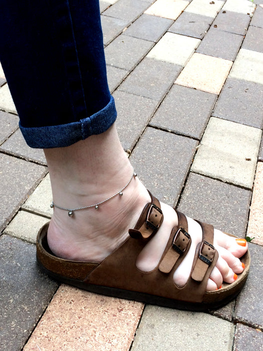 This festive anklet features a ball chain with 7 dangling spheres, crafted from sturdy, long-lasting stainless steel.