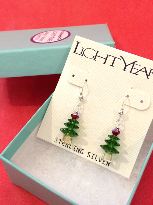 These adorable beaded tree earrings are ready for all of your holiday festivities! Glittering Swarovski crystals are stacked into a Christmas tree design. Handmade in the USA!