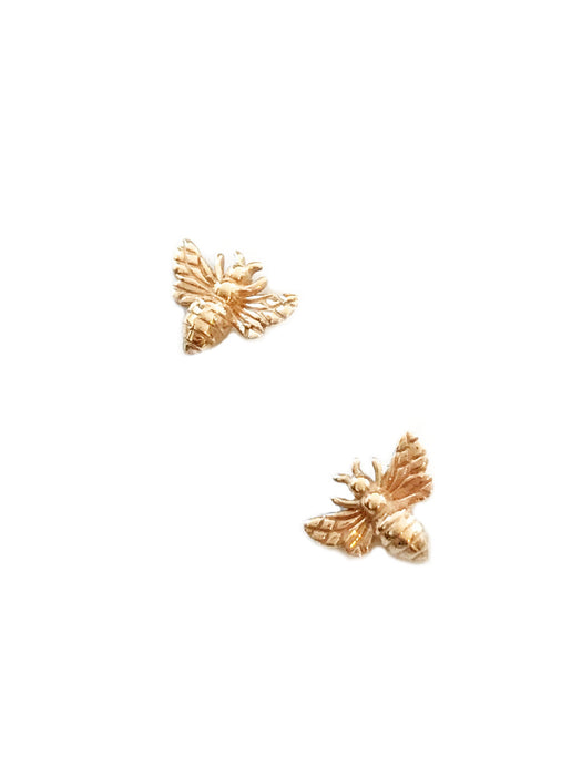 These detailed honey bee stud earrings are dipped in bronze for a golden finish.