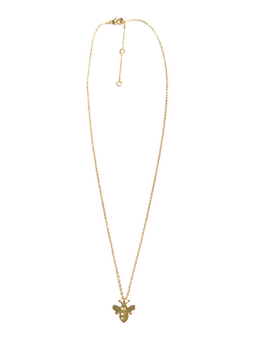 A sweet buzzing bumble bee pendant rests on an adjustable plated chain.