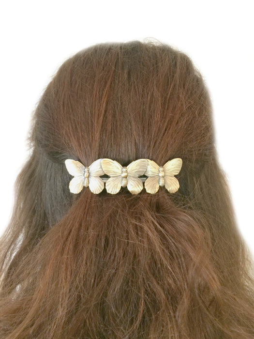 These hair barrettes feature three beautifully detailed butterflies in a row