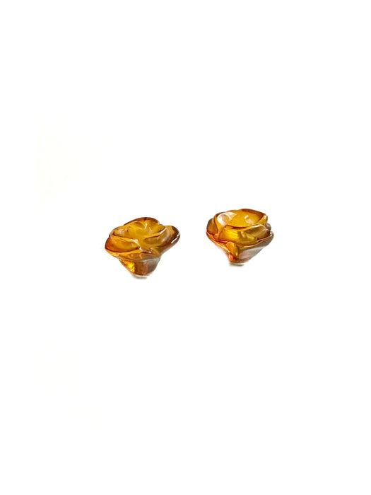 Amber posts carved by hand in the shape of beautiful blooming roses. Genuine Baltic amber, handmade in Poland. Sterling silver posts.
