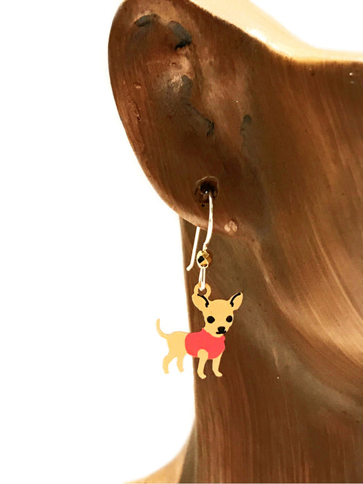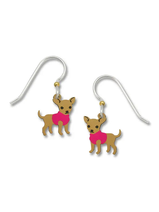 These perky chihuahuas are wearing cute little sweaters! These lightweight dangle earrings are handmade in the USA by Sienna Sky using vibrant enamel.