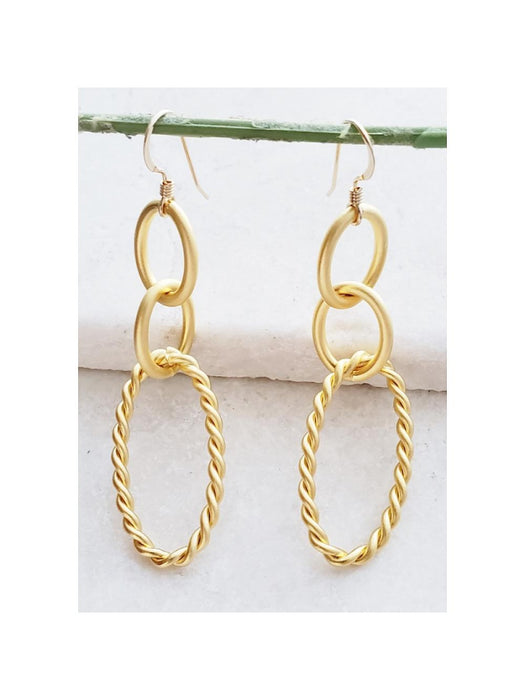 14kt gold filled ear wires with 16kt gold plated textured chunky chain links in matte finish.