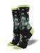 Can’t decide if you love Halloween or Christmas more? We’ve got you covered. These ghosty figures are mostly at home haunting the halls of their holiday mansions. Beware as skeletal snowflakes soak the sidewalk, they’ve got their eye on you! These crew socks have an adorably spooky print of a haunted house with festive friends on a black background with green details.