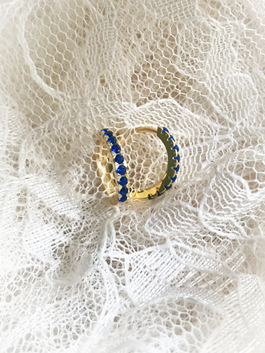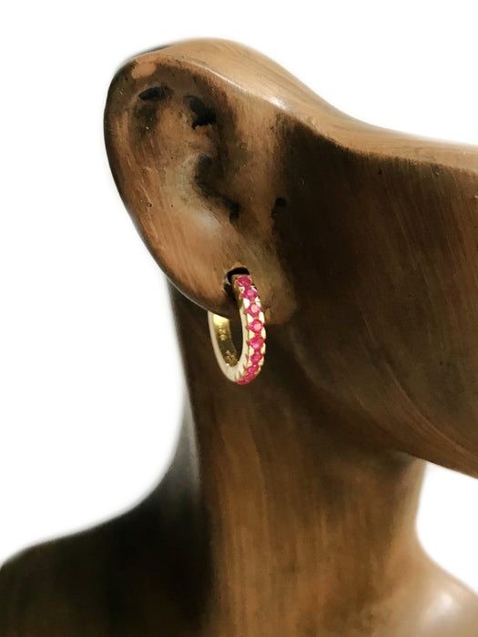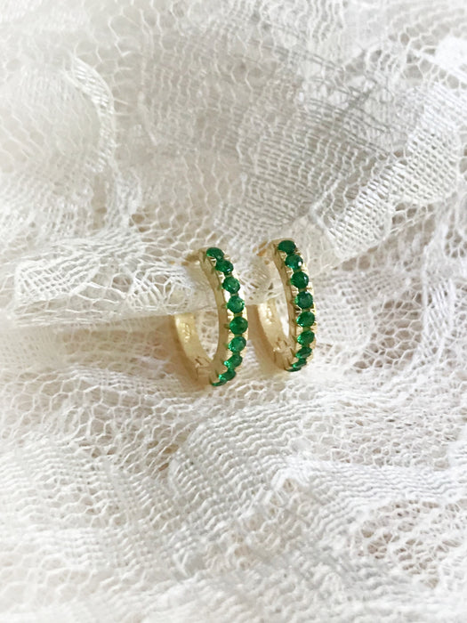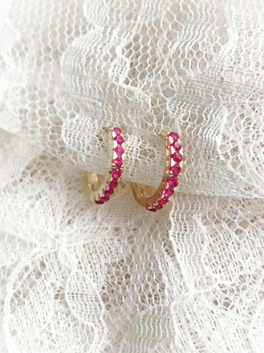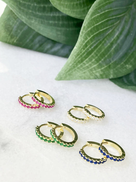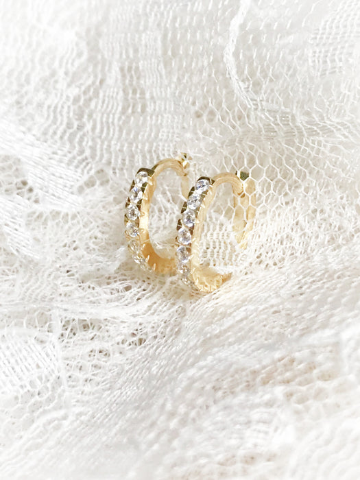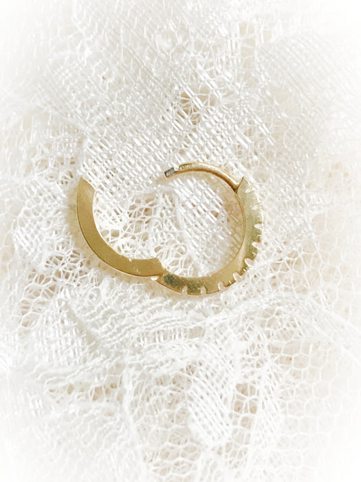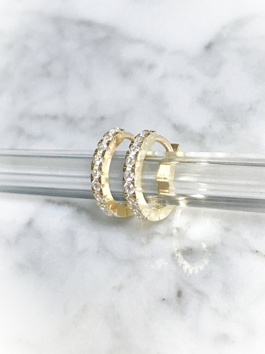 Huggie hoops are hinged at the bottom of the earring and click to clasp.