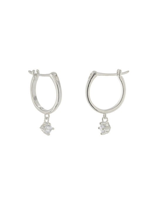 These classic hoop earrings have a small clear cubic zirconia crystal dangle for dressy elegance. Easy pincatch clasp.