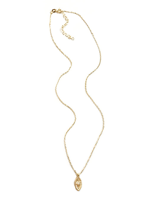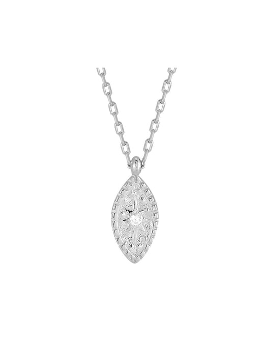 This chain necklace features a small marquis-shaped pendant embossed with a twinkling star and set with a cubic zirconia crystal in the center.