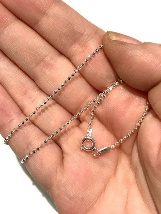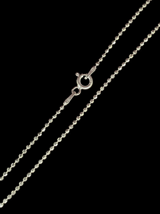 These sterling silver chains are a ball style with faceted beads for sparkle! Pair with one of our beautiful pendants or wear on its own.