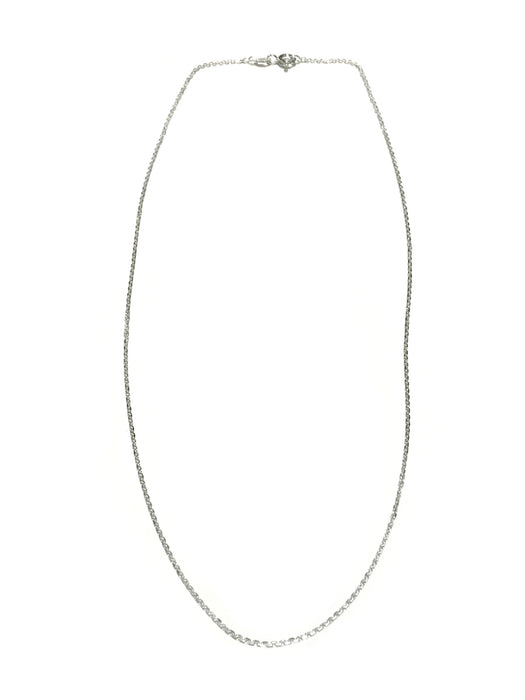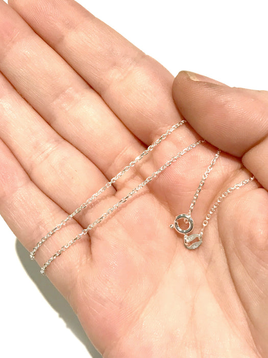 Sterling silver cable chain with a slightly shiny sparkle. Pair with one of our gorgeous pendants or wear on its own! Lobster clasp.
