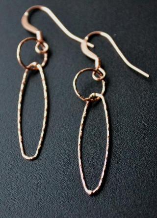 Lightweight and airy, these gold filled earrings are diamond-cut for glittering sparkle! An elongated oval hangs from a smaller circle for geometric perfection.