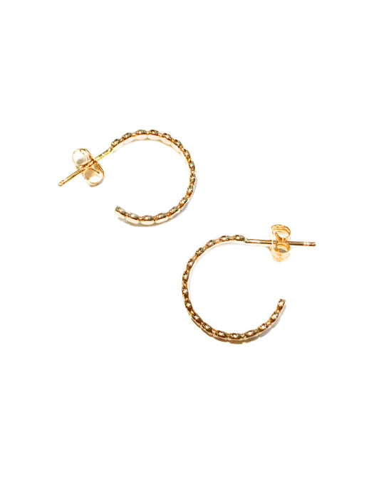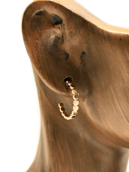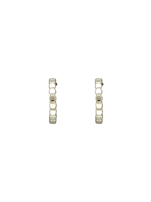 These versatile hoop earrings are a row of flattened beads. Post backs with butterfly backings included.