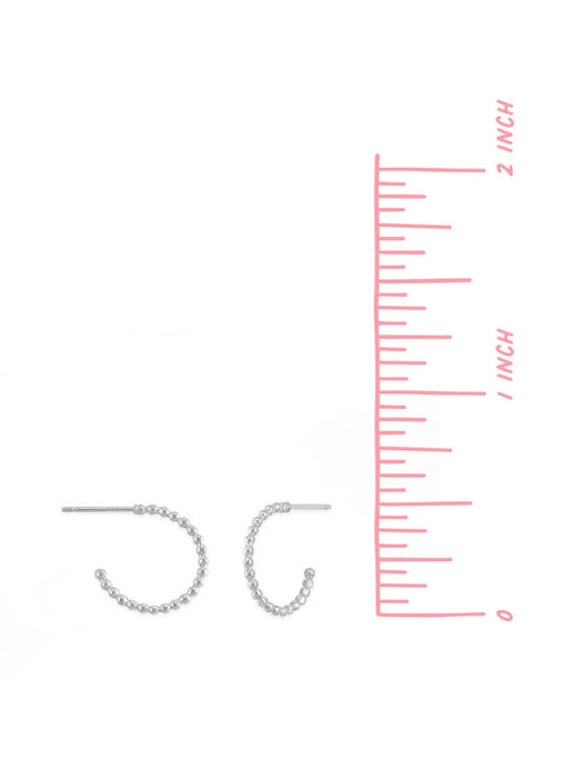 Simple hoop earrings are a curved row of ball beading. Post closure with butterfly backs.