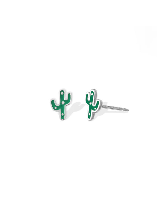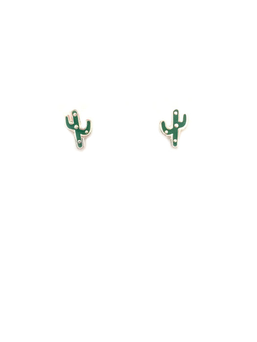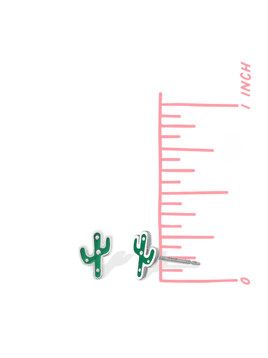Sweet cactus stud earrings are detailed with bright green enamel.