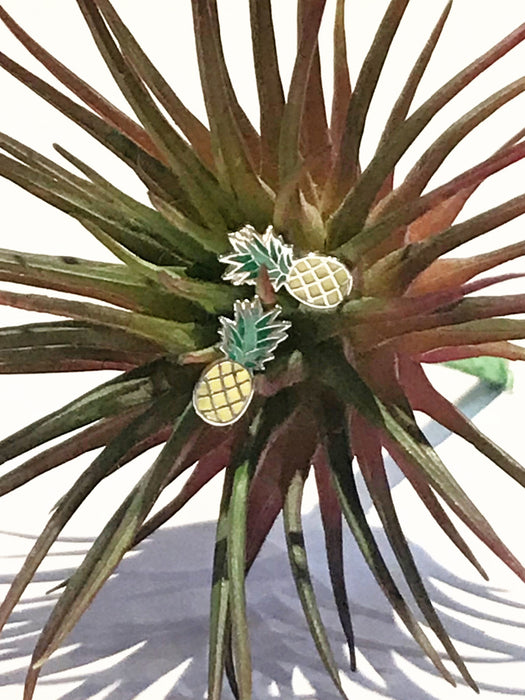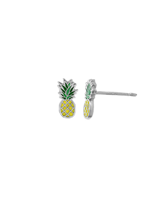 Adorable pineapple stud earrings are filled with vibrant enamel in yellow and green.