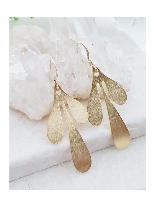 These dangle earrings feature an abstract drip design finished with soft etching.